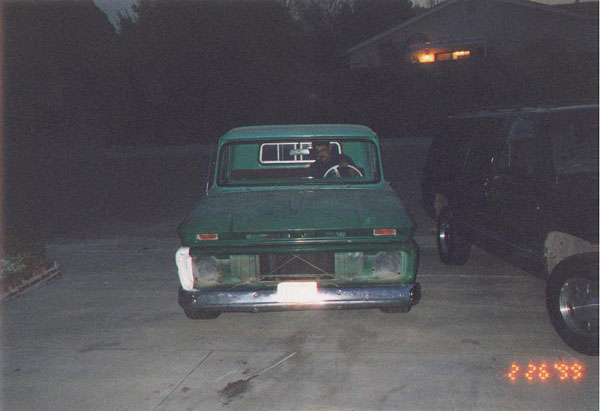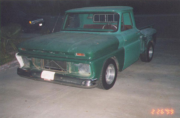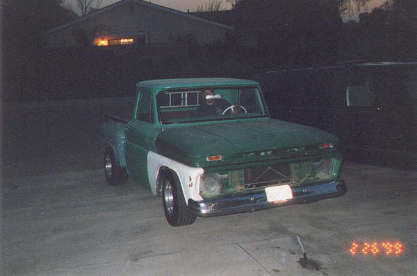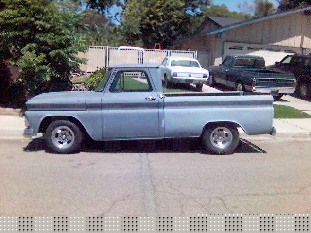 When I was putting it together. It had a 230ci straight six with 4.11s in the rear, 2 coils cut off of the froint and heated rear springs to give it that little red wagon comfy ride. My dad and I tore it down to the frame and rebuilt it replacing things with parts from our '66 long bed parts truck. Dropped in the rebuilt 350 with a cam and HEI. Used the factory A/C cab and other random parts. I thought it was starting to look pretty badass.