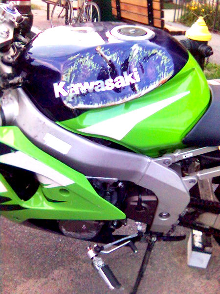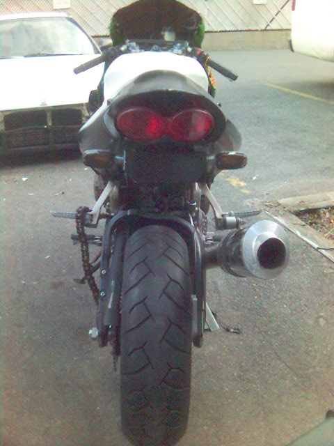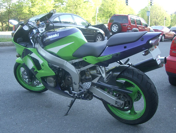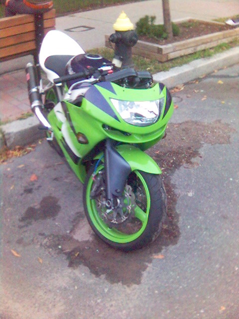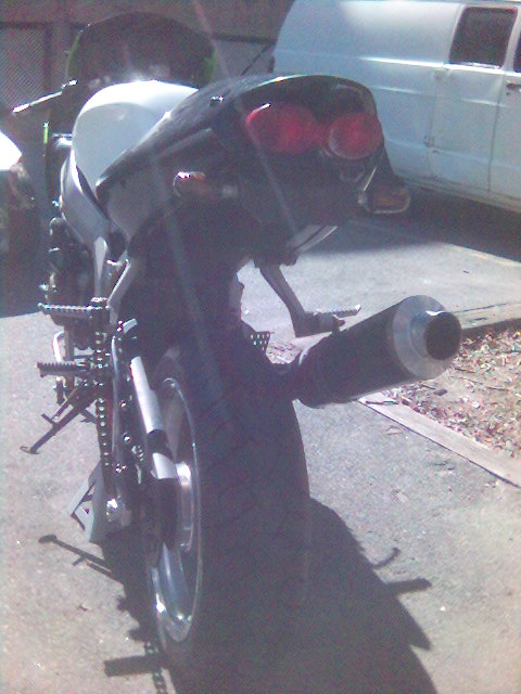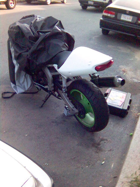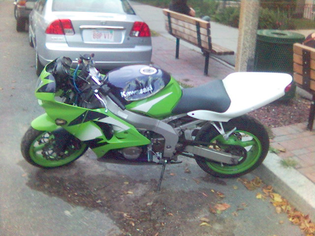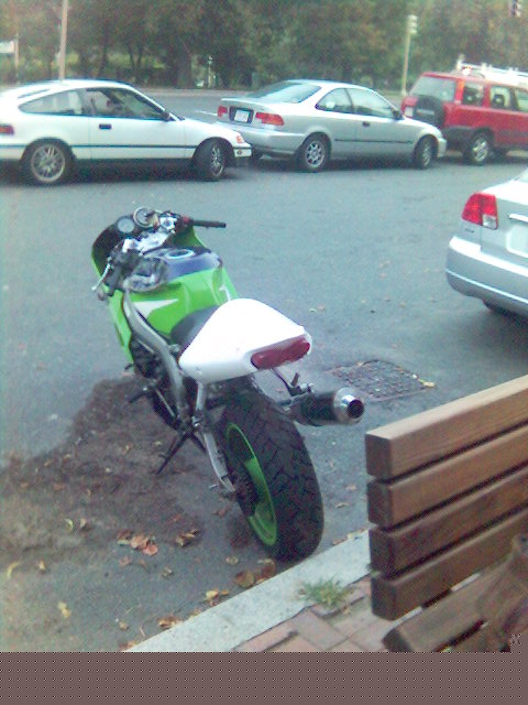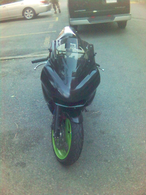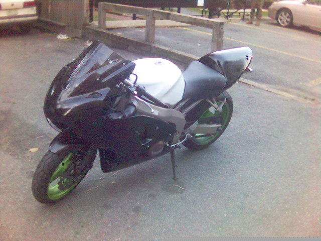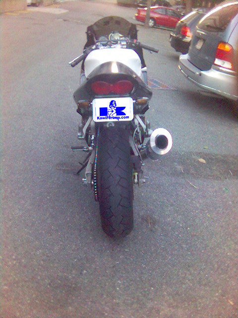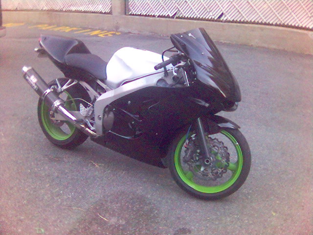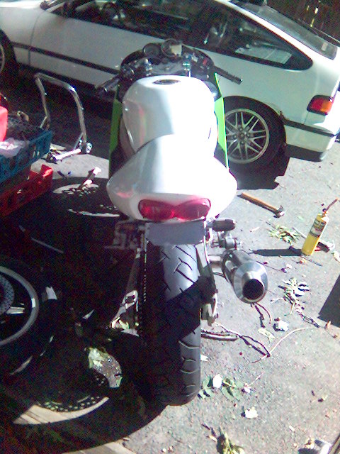 I'm now waiting on a set of black powdercoated wheels from my friend Sanya in the Ukraine. I'll also hopefully be getting a stock tail cowl and pillion seat from a member on the kawiforums. Then I'll consider the cost of a paint job. probably black with red graphics of some kind.