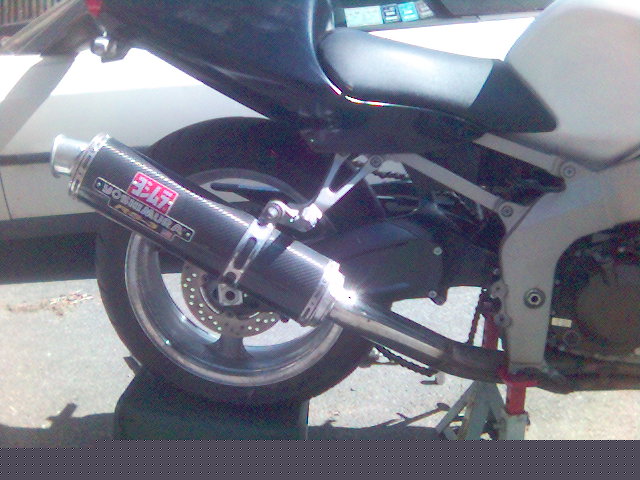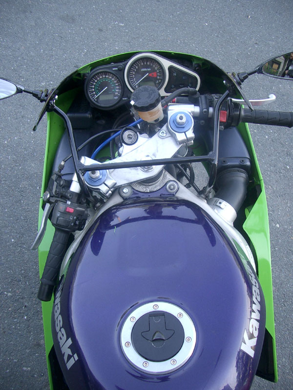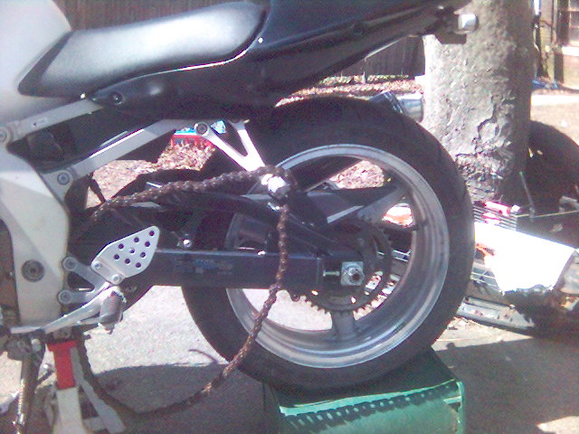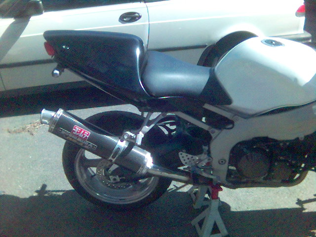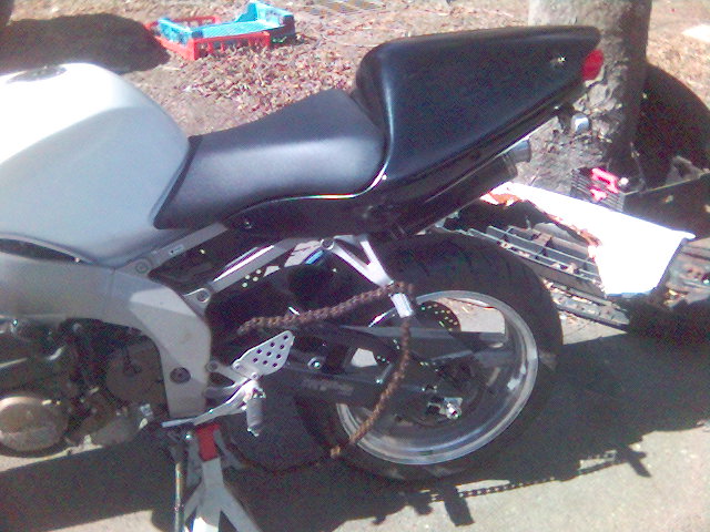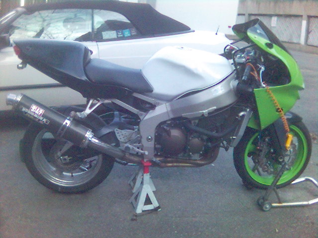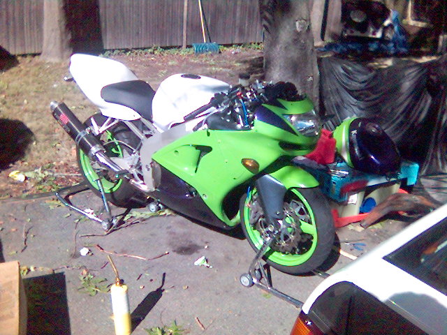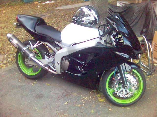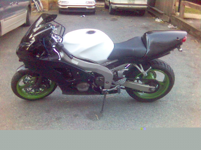 I have raplaced the upper fairing and installed a dark smoke double bubble widscreen, new levers and a new front wheel that doesn't have a bent lip. I've also converted over to a braced swingarm from a 2005 ZX-6R.