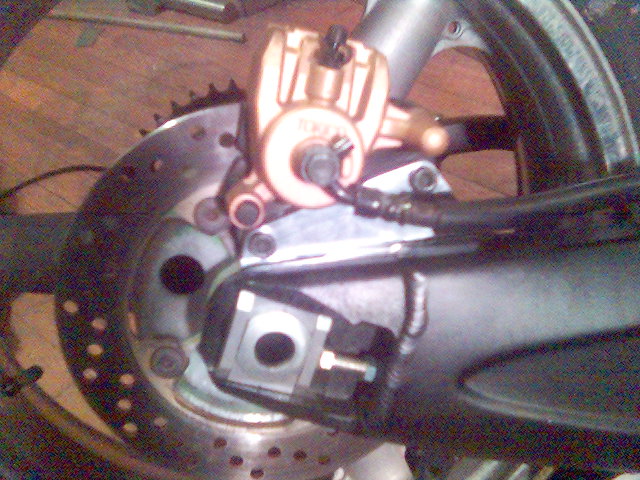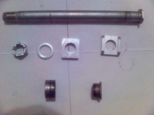 The sprocket side bushing from the 98-02 had to be faced to rmove 2mm in width. This maintained the correct chainline and centering of the wheel. The new offset brake bracket used a 10mm wide bushing with an ID of 25mm and an OD of 32mm.