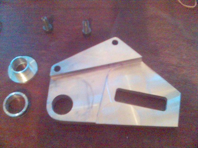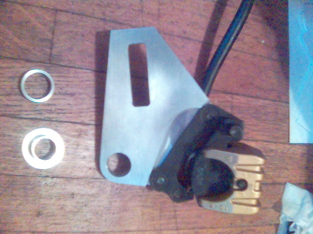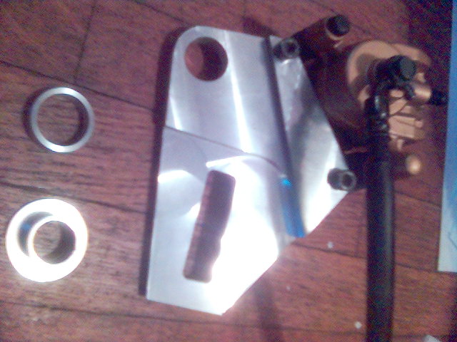 This necessitated the fabrication of a new offset brake bracket and a couple new bushings.